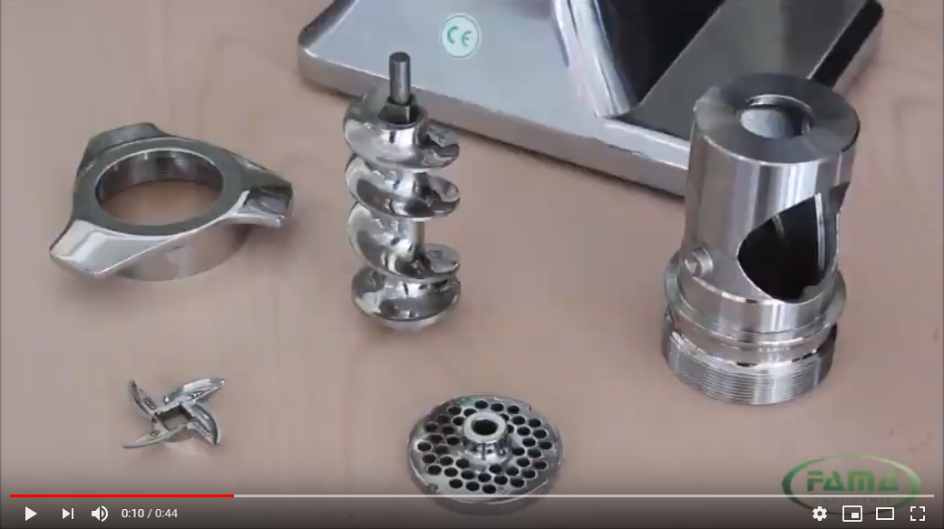 Professional model 32 meat mincer with great power and durability. Indestructible machine, appreciated everywhere for its simplicity of use and enormous work output. Very powerful, silent, ventilated induction motor of Italian production with thermal protection for overloads. Speed reducer composed of 4 helical gears in oil bath. Reverse gear as standard. Meat grinding unit is completely removable and can be stored in the fridge or washed carefully even in the dishwasher (only the stainless steel version). Self-sharpening dies, hopper and collection plate in stainless steel as standard. Machine dimensions 24 x 50 x 51 cm. Hourly production: 400 kg.