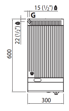 Types of Gas : 0.31 G30/G31 kg/h - 0.42 G20 m3/h - 0.49 G25 m3/h