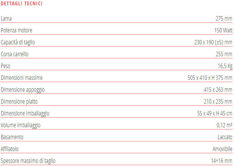 • Gravity feed slicer 27.5 cm blade Lusso 275
