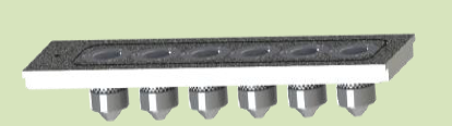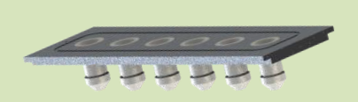- STF6-400: Fixed mold with 6 tube outlets for liquid doughs + 6 smooth nozzles diameter 10mm