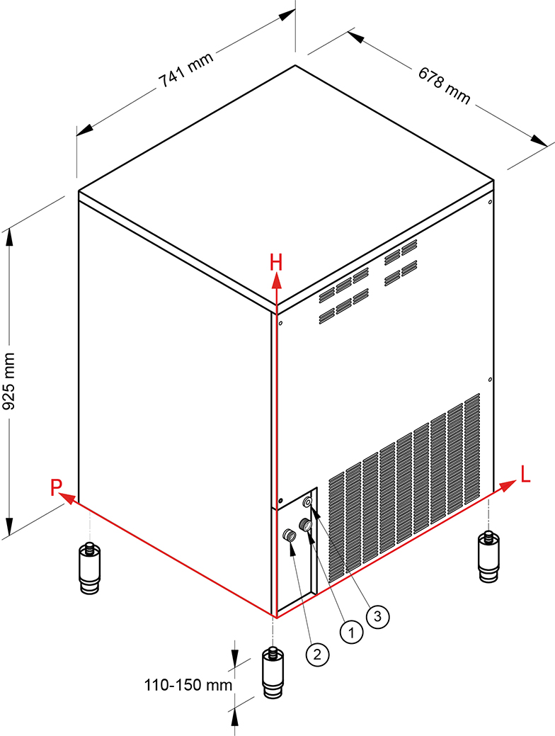 - Reduced consumption (1lt water/1kg ice, air version)