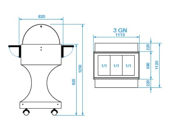 Refrigerated buffet trolley with plexiglass dome 3 GN 1/1 pans
