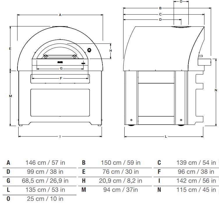 Countertop wood-fired pizza oven. Designed for restaurants and pizzerias.