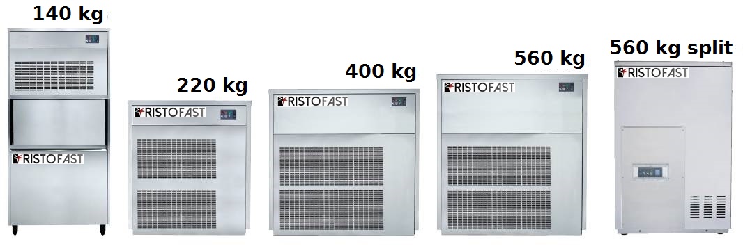 Manufacturer, maker for daily ice production starting from 166 kg up to 763 kg. Ideal for all catering businesses: bars, pizzerias, restaurants. This range of ice makers is available with air or water cooling variants.
