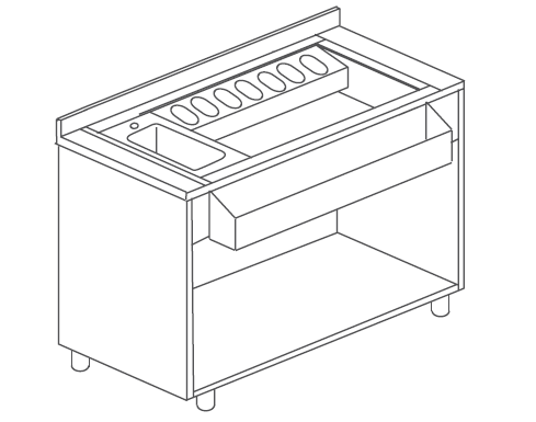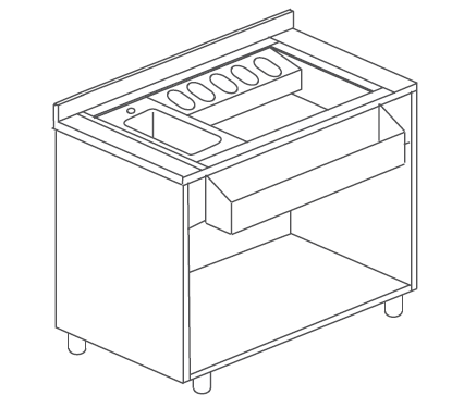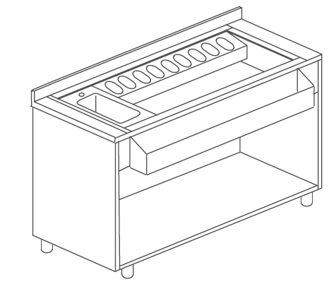 DESCRIPTION The top can be smooth or with a splashback. In the serial supply, the freestyle counter is included with gastronorm trays, ice tray drain and bottle pocket.