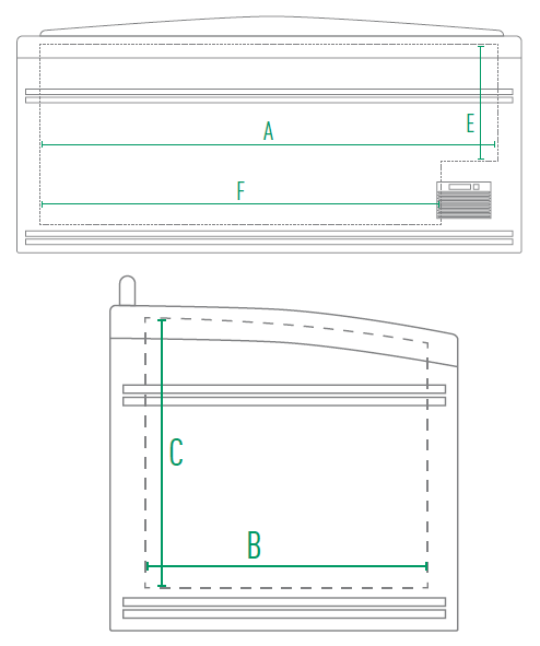 Internal dimensions : L.168 x D.69.1 x H.66 cm