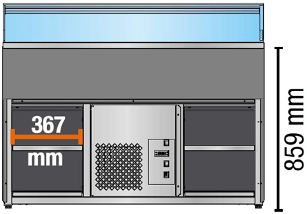 Plateaux de présentation en acier inoxydable facilement amovibles, profondeur 65 cm.
