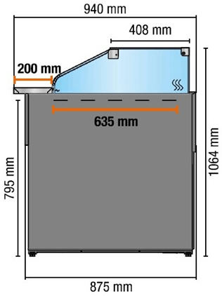 Vitrine réfrigérée de la gamme Penelope, profondeur 94 cm. Fabriquée en Italie, son design élégant et original vous offrira une vue optimale sur vos pâtisseries et chocolats.