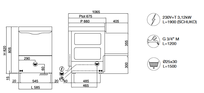 Le lave-vaisselle peut laver des verres de différentes formes et tailles, ainsi que 18 assiettes par cycle grâce aux paniers inclus, avec une productivité maximale de 40 paniers/heure (720 assiettes/heure). Il peut également accueillir des plateaux GN 1/1 grâce au panier dédié. La pompe de vidange en option permet une vidange automatique et un remplacement partiel de l'eau propre à chaque cycle de lavage.