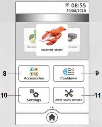 Vapeur : directe avec réglage automatique via sélecteur à écran tactile