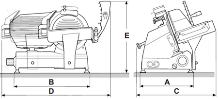 Trancheuse à gravité professionnelle avec lame de 35 cm pour charcuteries, boucheries et charcuteries. Idéale pour trancher charcuteries, rôtis, fromages, poissons et viandes.