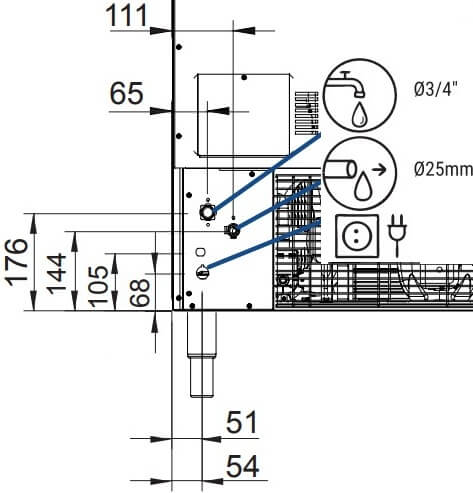 - Ventilation frontale pour accueillir la machine à glaçons.