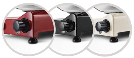 Questa affettatrice costruita in lega di alluminio trattata anodicamente ha il vantaggio di una rapida pulizia ed assoluta igiene. Il regolatore dello spessore di taglio da 0 a 1,6 cm è molto sensibile e permette una regolazione decimale. L'affilatoio di facile montaggio semplifica il lavoro dell'utente mantenendo efficiente il taglio perfetto della merce. Il piatto montato su cuscinetti a sfere ha una scorrevolezza eccezionale e permette di tagliare salumi pesanti, arrosti, formaggi, pesce, carni dure ed altro.