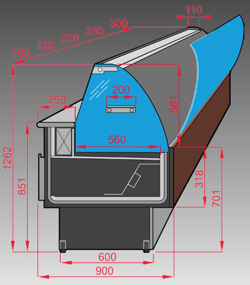 Espositore refrigerato semi-ventilato con vetro curvo. Banco freddo per l’esposizione e la conservazione di prodotti freschi e preconfezionati. Ideale per pasticceria, gastronomia, salumeria, macelleria, pizzeria, snack, latticini e formaggi. Vetrina espositiva ideale per ambienti stretti. Ordinabile nelle seguenti lunghezze: 100, 150, 200, 250 e 300 cm.