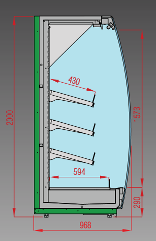 Potenza Assorbita dall'Illuminazione Ripiano: 16 x 36 W