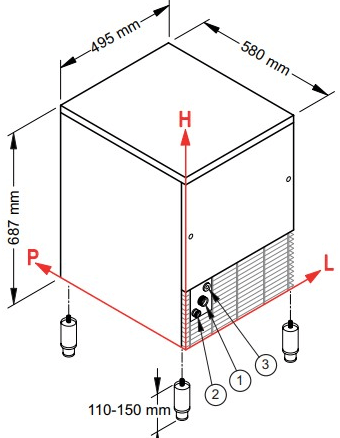 Produzione (Temperatura aria 21° C - Temperatura acqua 15° C): 35 kg / 24 h
