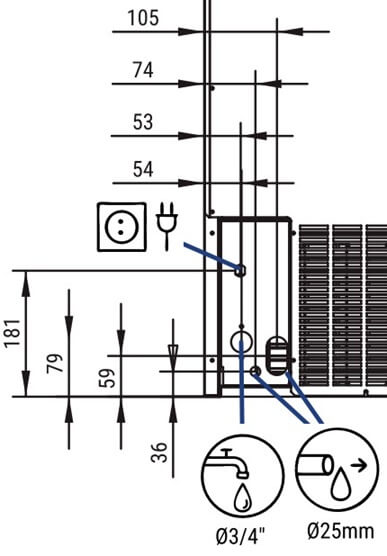 Produzione (Temperatura aria 21° C - Temperatura acqua 15° C): 72 kg / 24 h (cond. aria) - 75 kg / 24 h (cond. acqua)